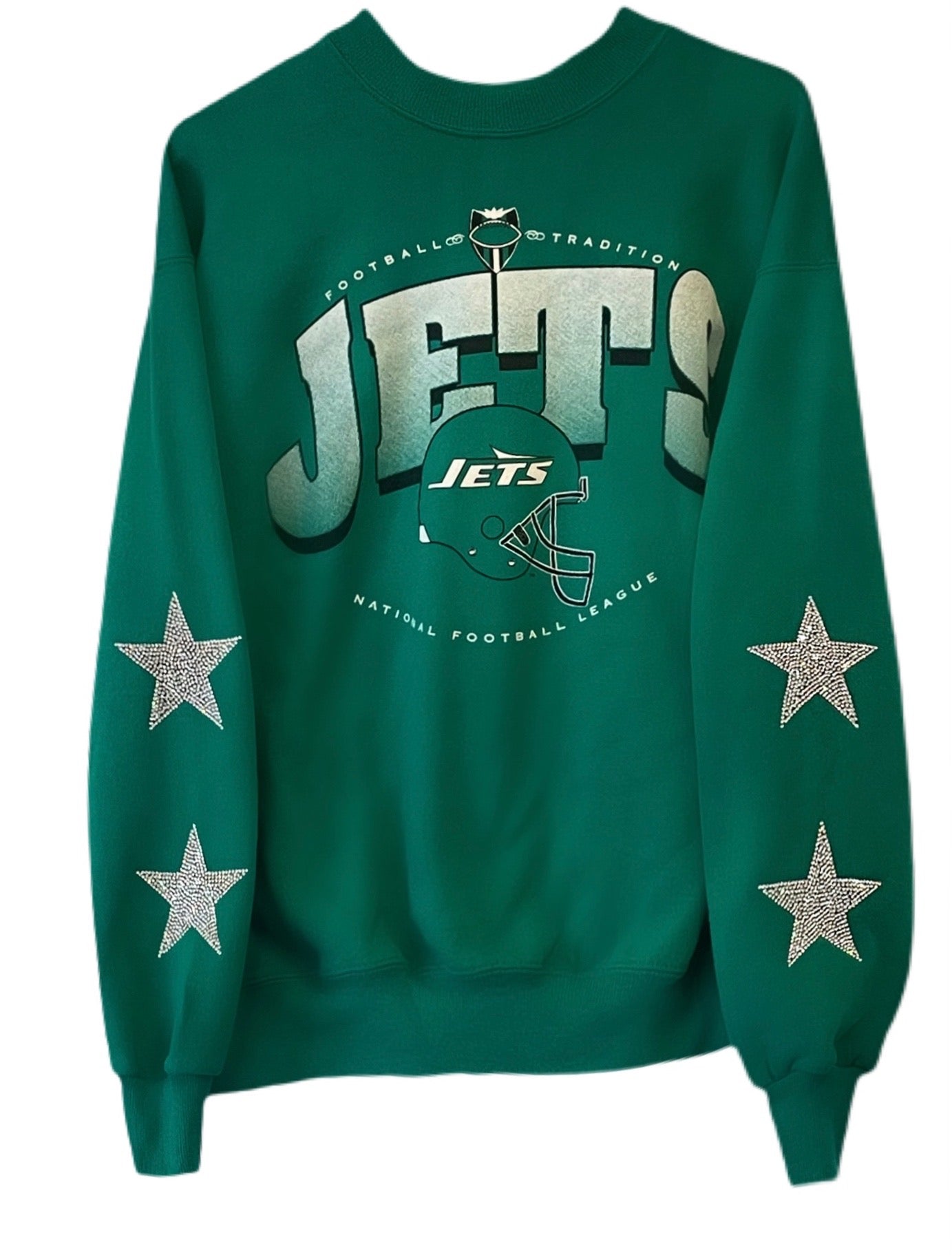 NY Jets, Football One of a KIND Vintage Sweatshirt with Crystal Star Design