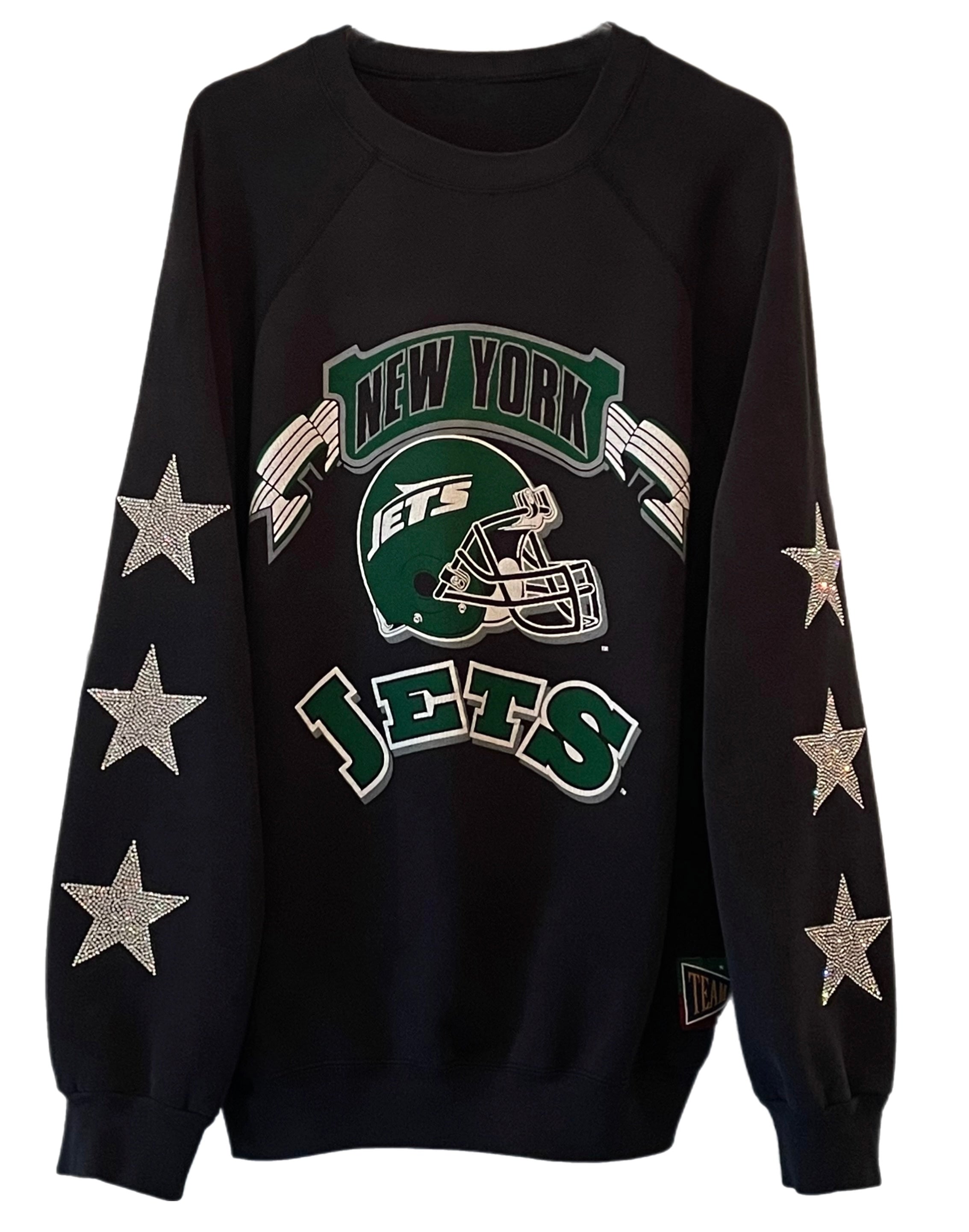 NY Jets, Football One of a KIND Vintage Sweatshirt with Three Crystal Star Design