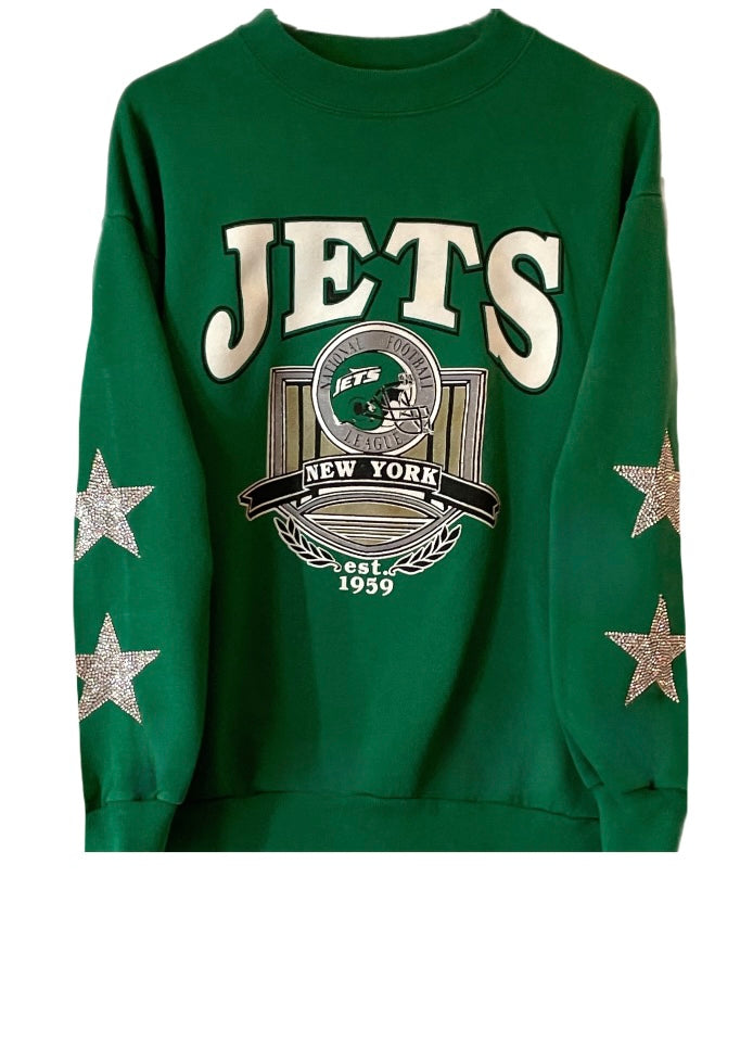 NY Jets, Football One of a KIND Vintage Sweatshirt with Crystal Star Design