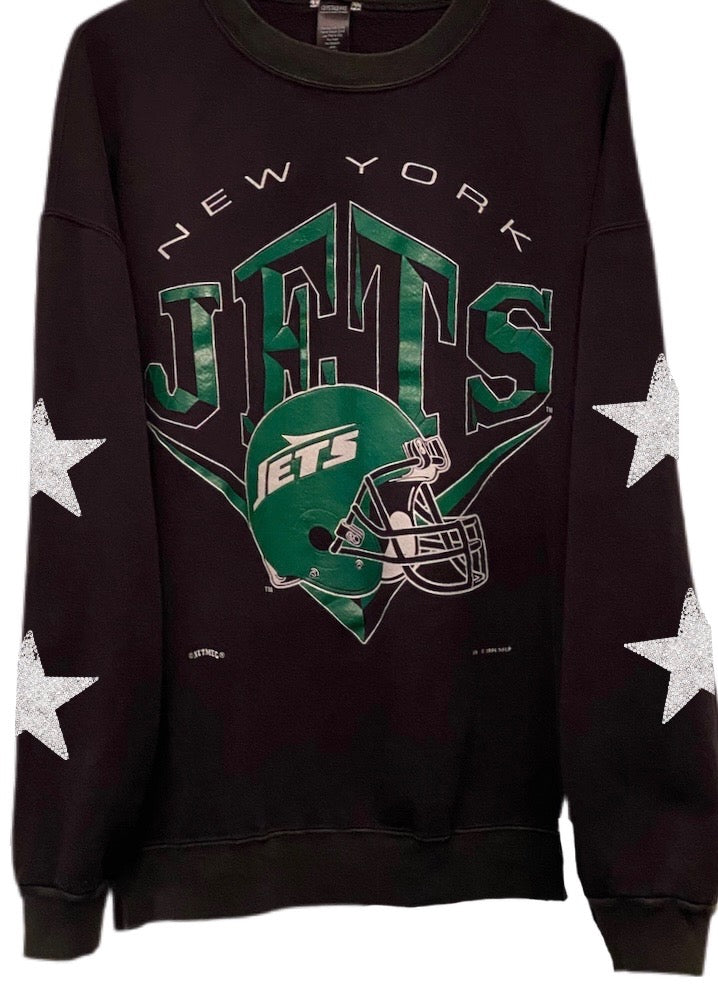 NY Jets, Football One of a KIND Vintage Sweatshirt with Crystal Star Design