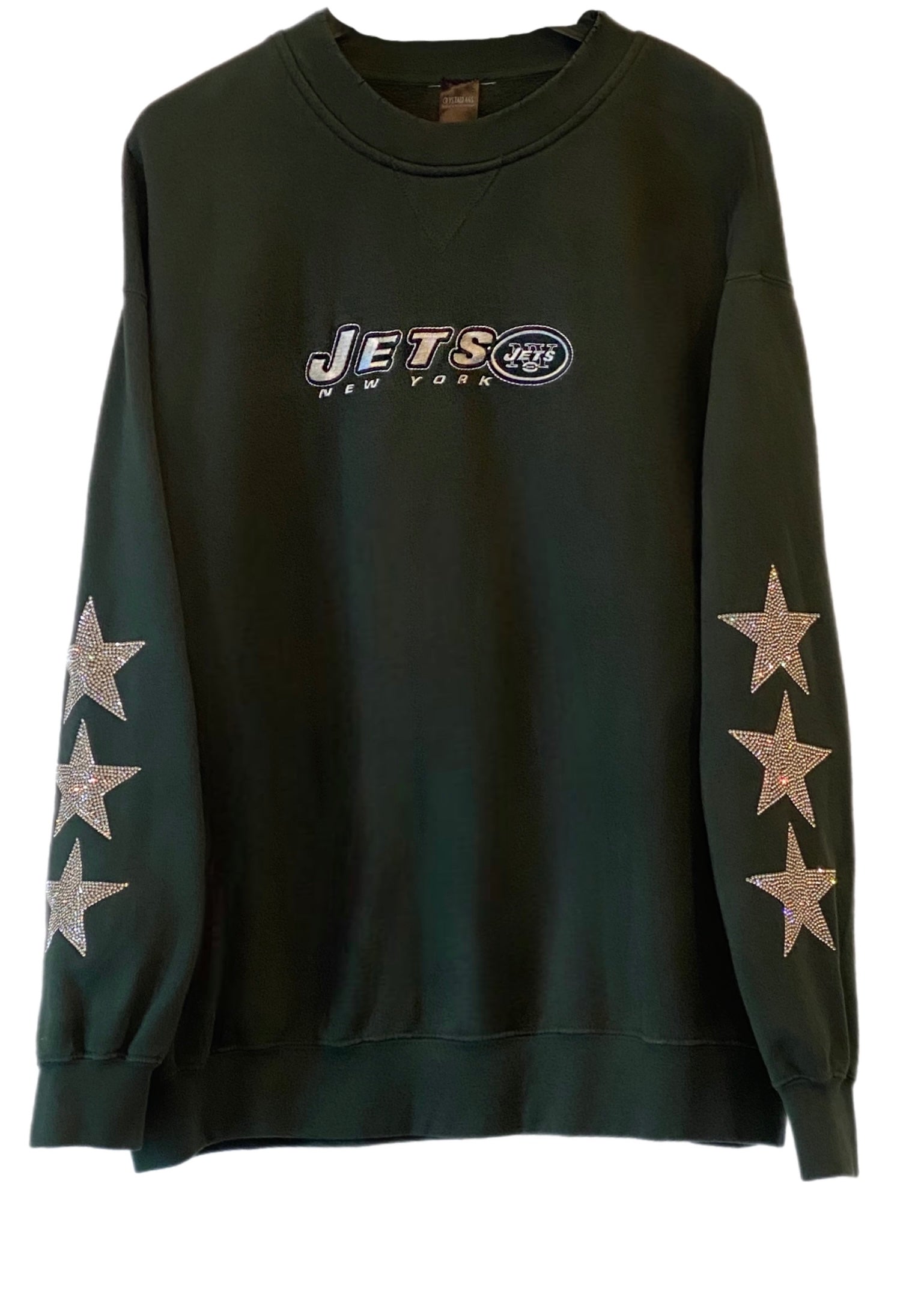 NY Jets, Football One of a KIND Vintage Sweatshirt with Three Crystal Star Design