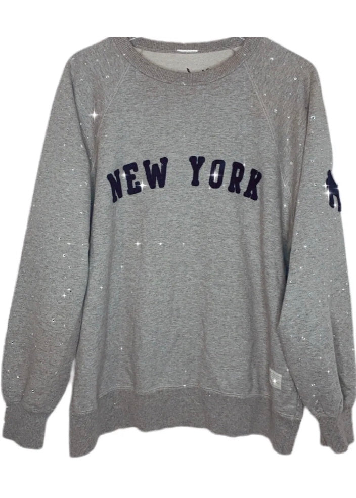 NY Yankees, Baseball One of a KIND Vintage Sweatshirt with Overall Swarovski Crystals on the Sleeves