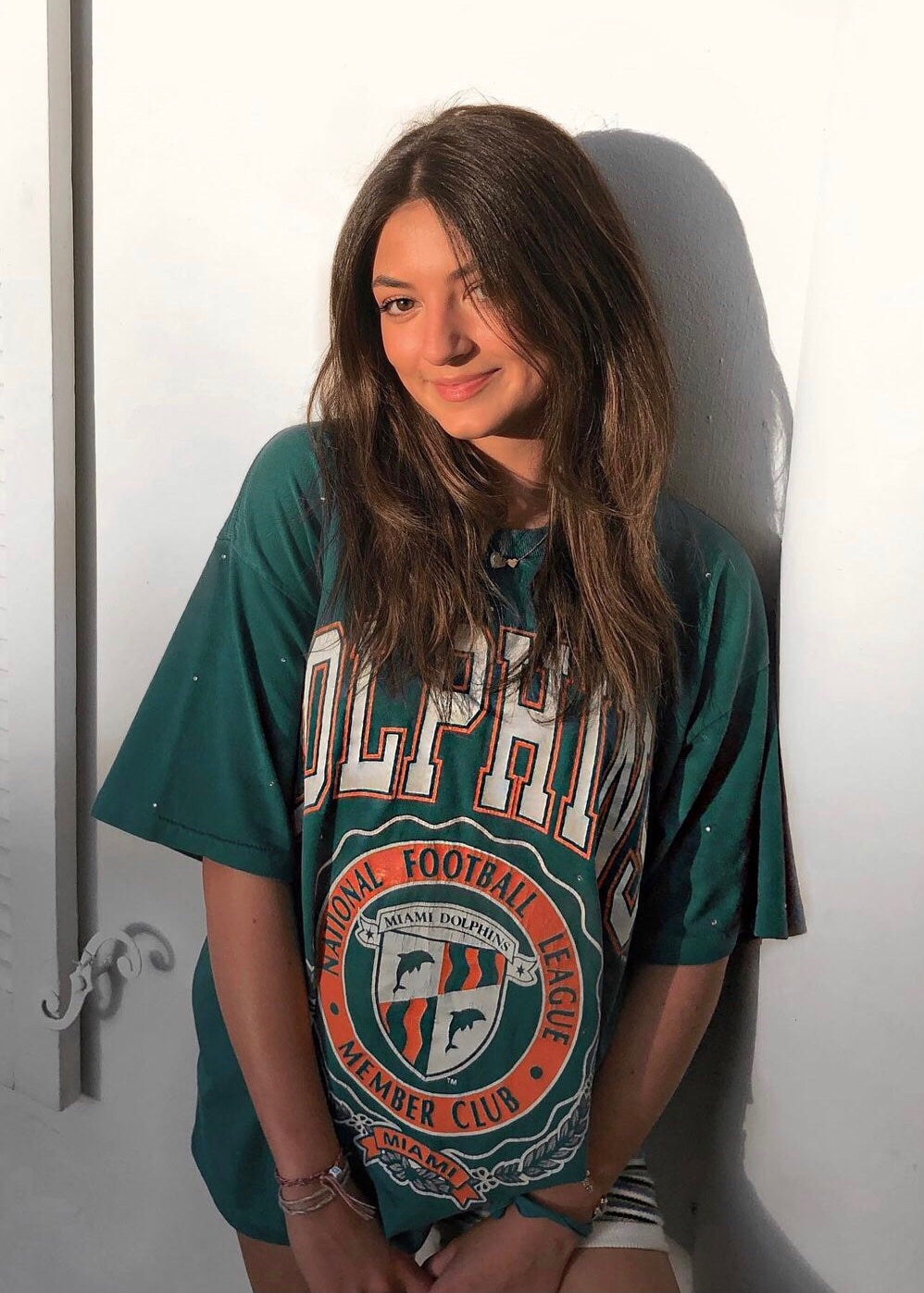 Miami Dolphins, Football One of a KIND Vintage Tee with Overall Crystal Design