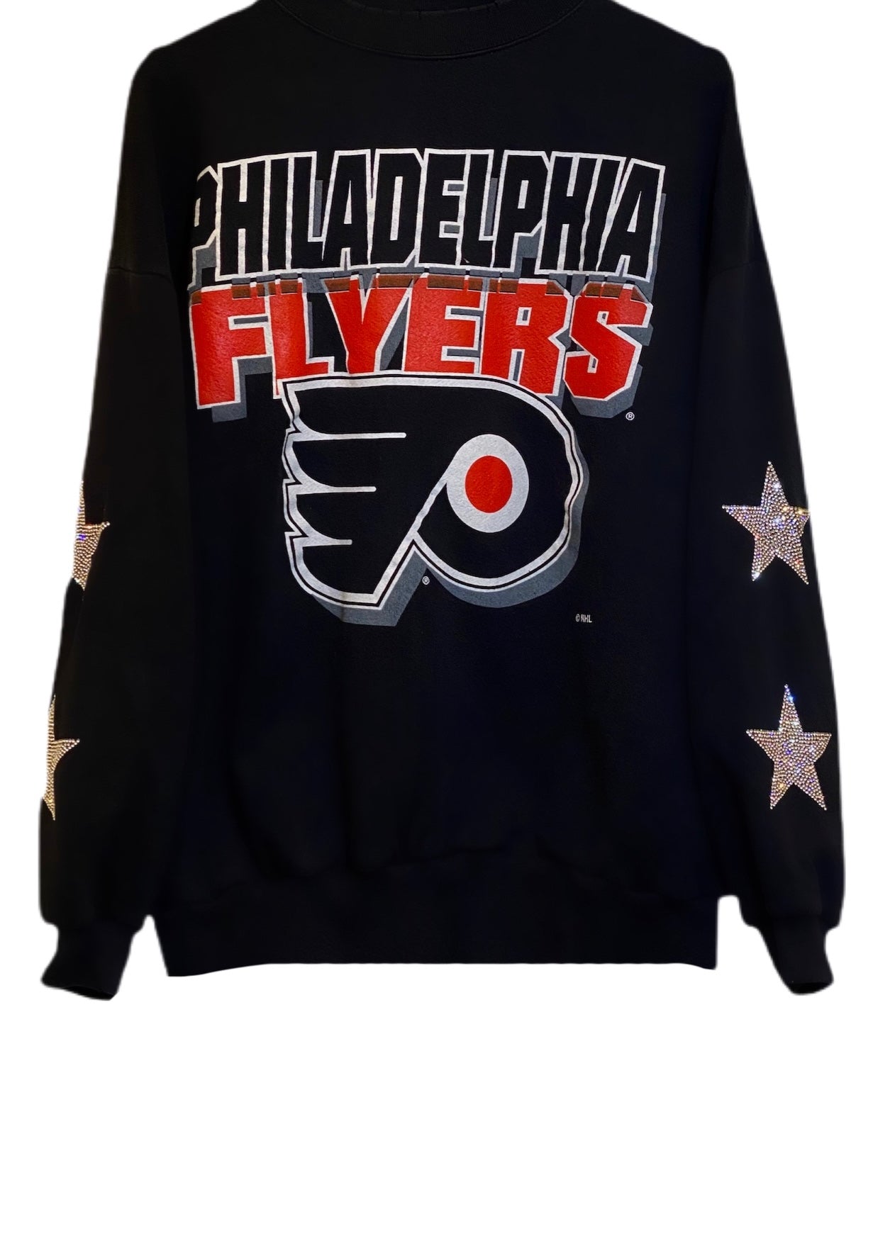 Philadelphia Flyers, Hockey One of a KIND Vintage Sweatshirt with Crystal Star Design, Custom Crystal Name & #