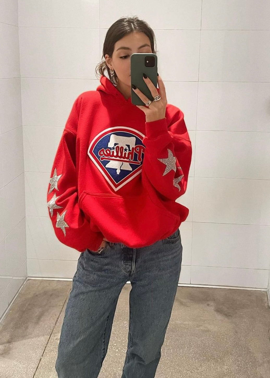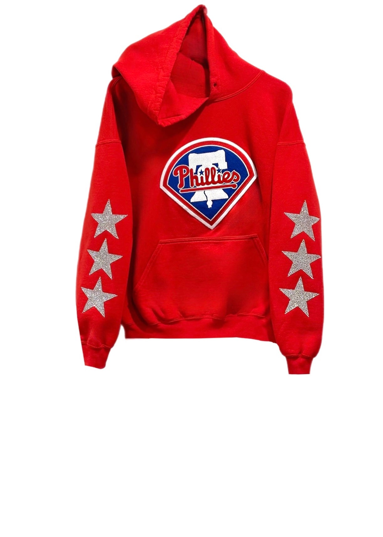 Philadelphia Phillies, Baseball One of a KIND Vintage Hoodie with Three Crystal Star Design