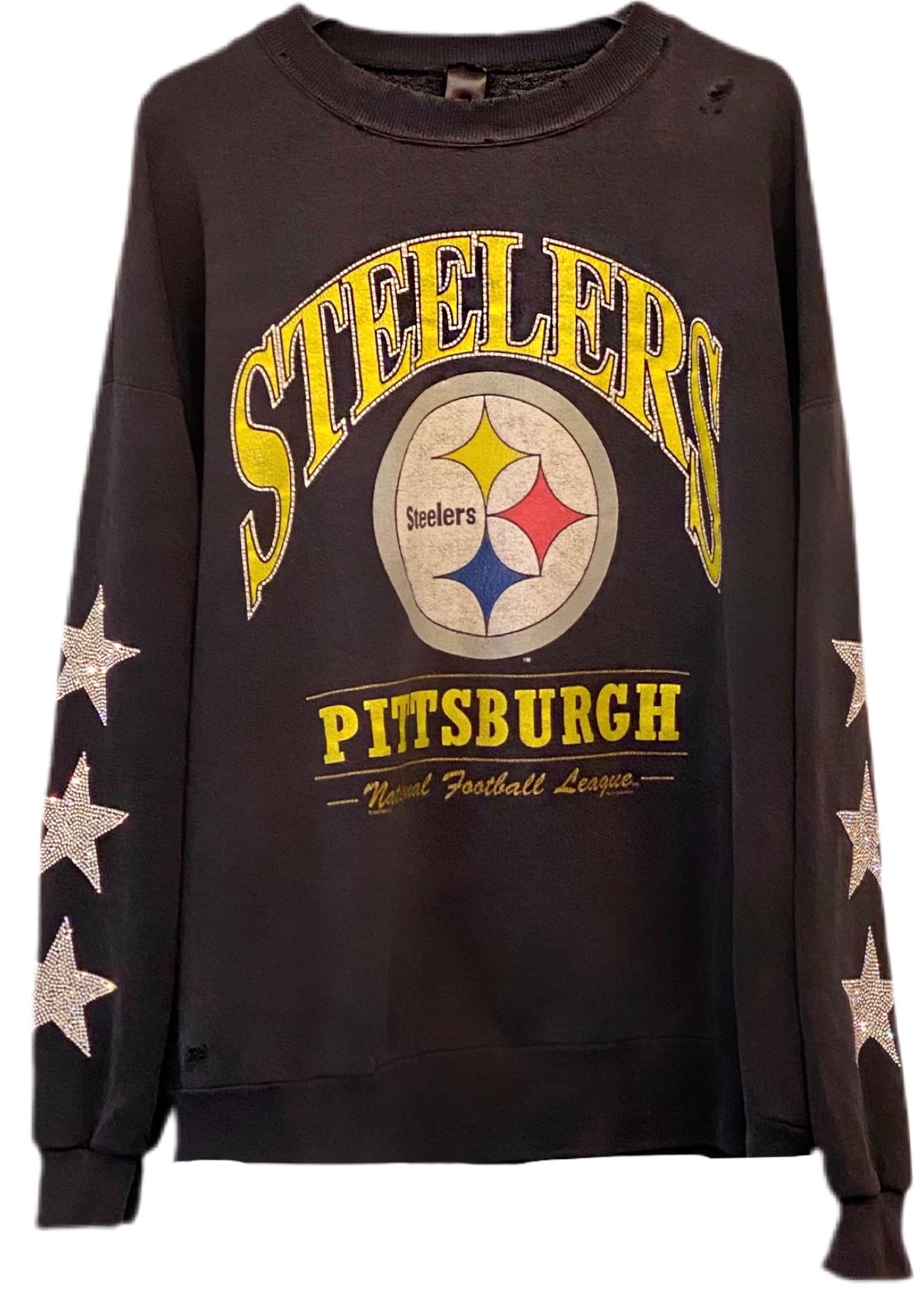 Pittsburgh Steelers, Football One of a KIND Vintage Sweatshirt with Three Crystal Star Design