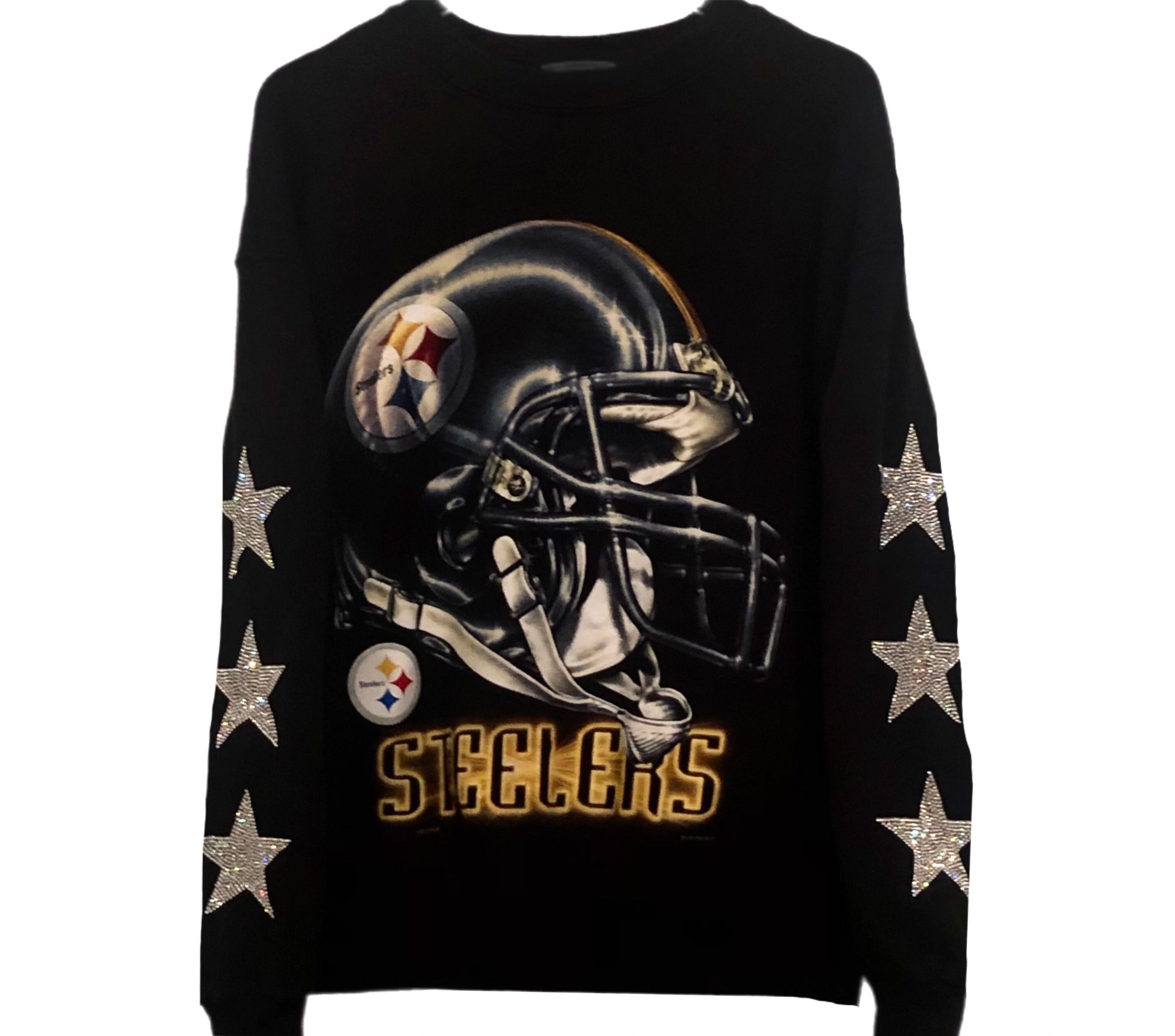 Pittsburgh Steelers, Football One of a KIND Vintage Sweatshirt with Three Crystal Star Design