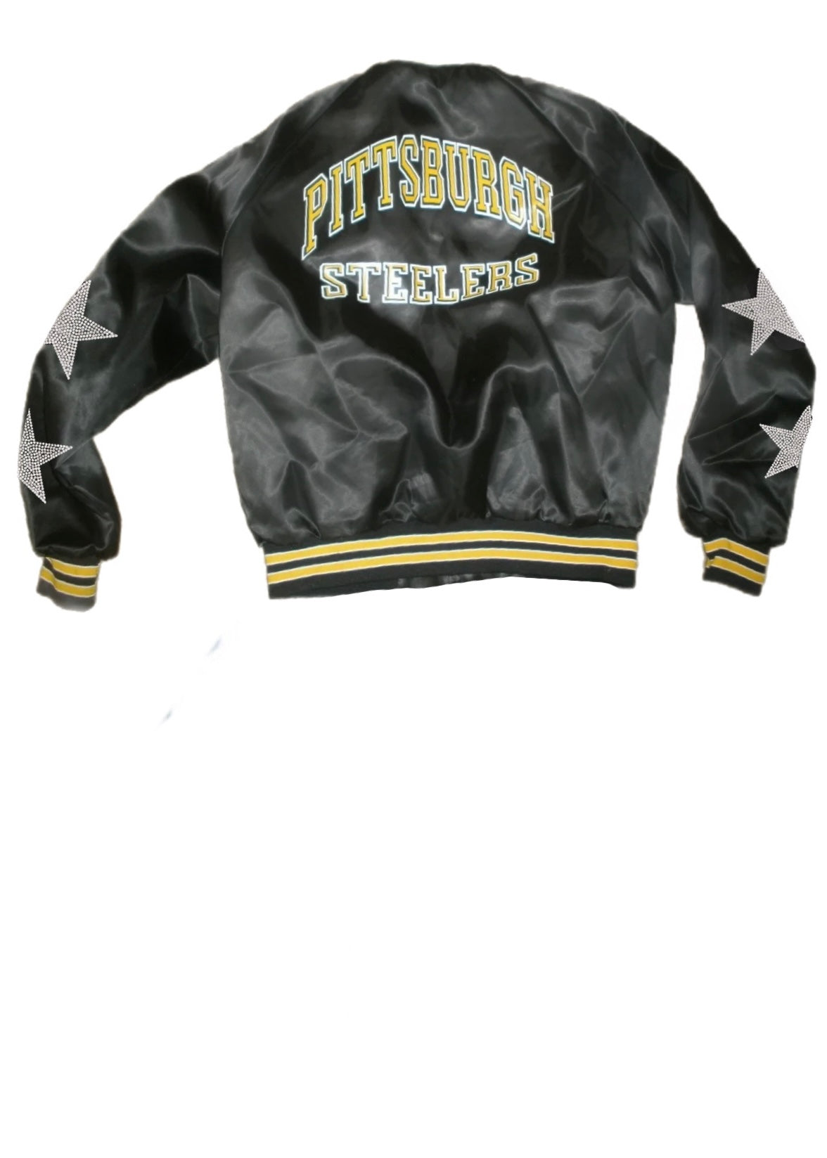 Pittsburgh Steelers, Football “Rare Find” One of a KIND Vintage Satin Jacket with Crystal Star Design - Soft, frayed & oversized depending on the person