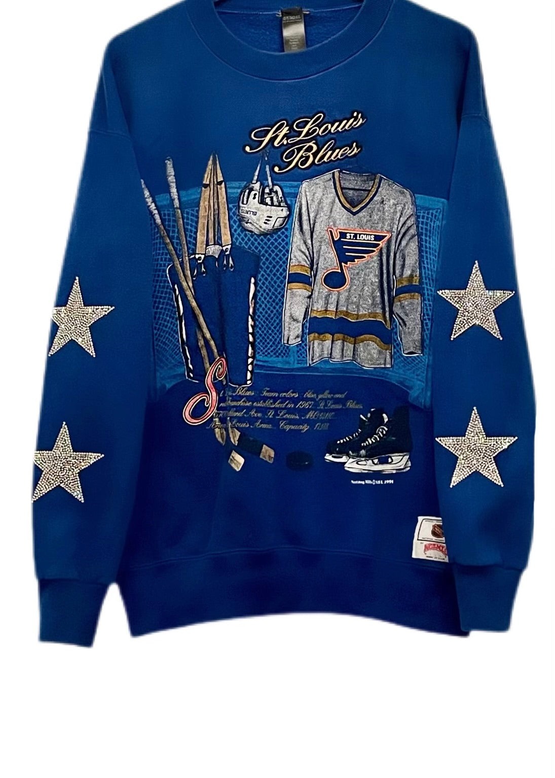 St. Louis Blues, Hockey One of a KIND Vintage Sweatshirt with Crystal Star Design