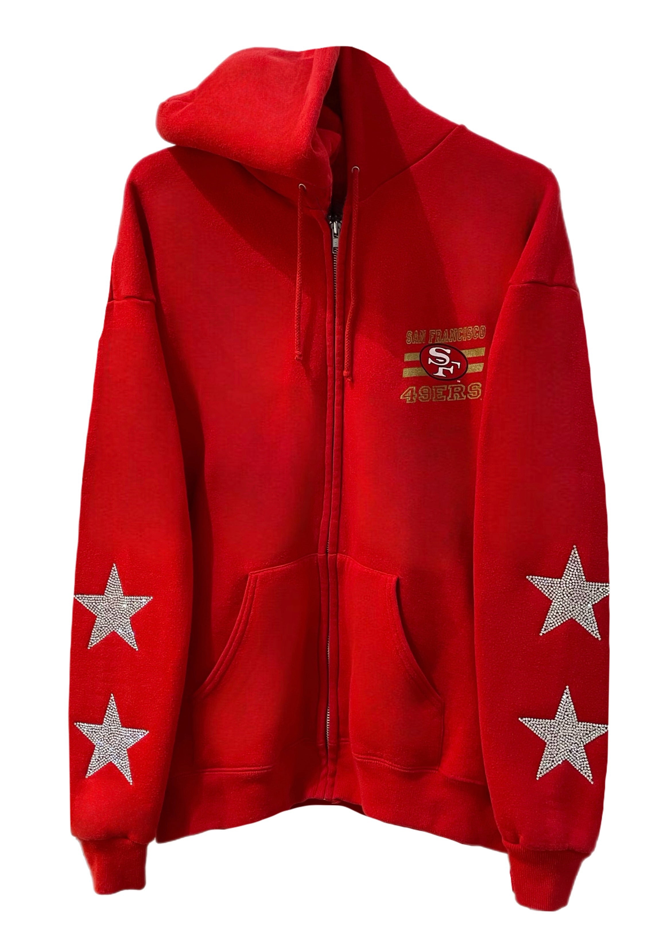 San Francisco 49ers, Football One of a KIND Vintage Zip Up Hoodie with Crystal Star Design