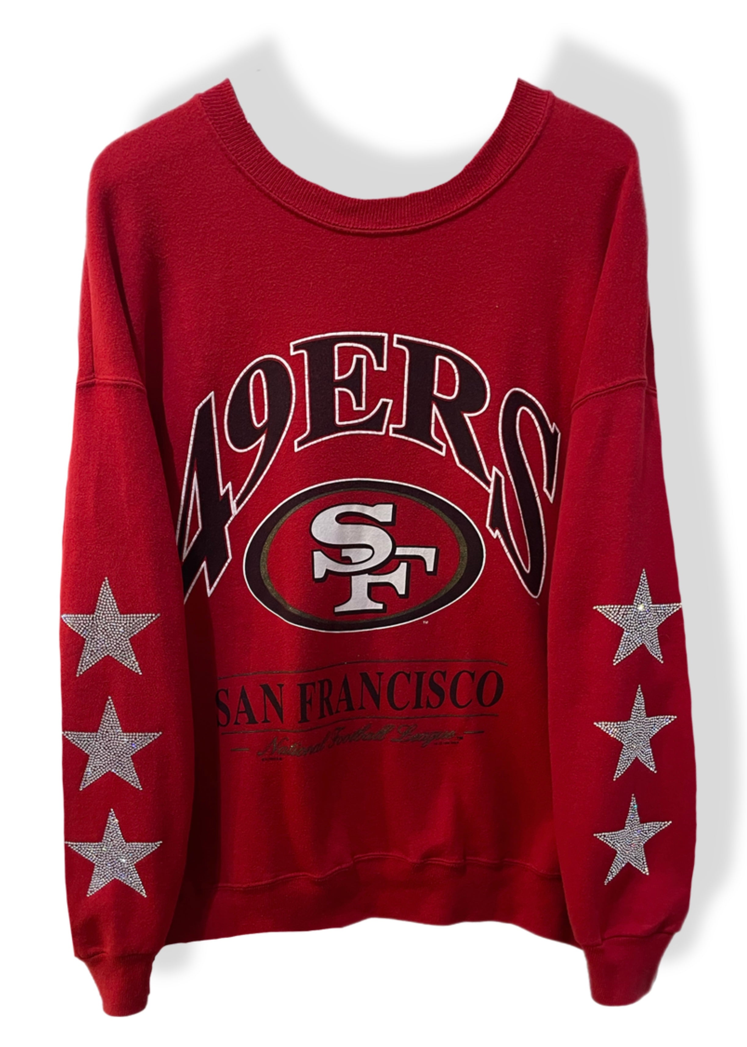 San Francisco 49ers, Football One of a KIND Vintage Sweatshirt with Three Crystal Star Design