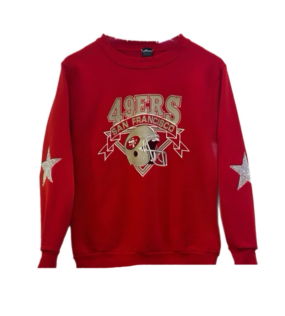 San Francisco 49ers, Football One of a KIND Vintage Sweatshirt with Crystal Star Design