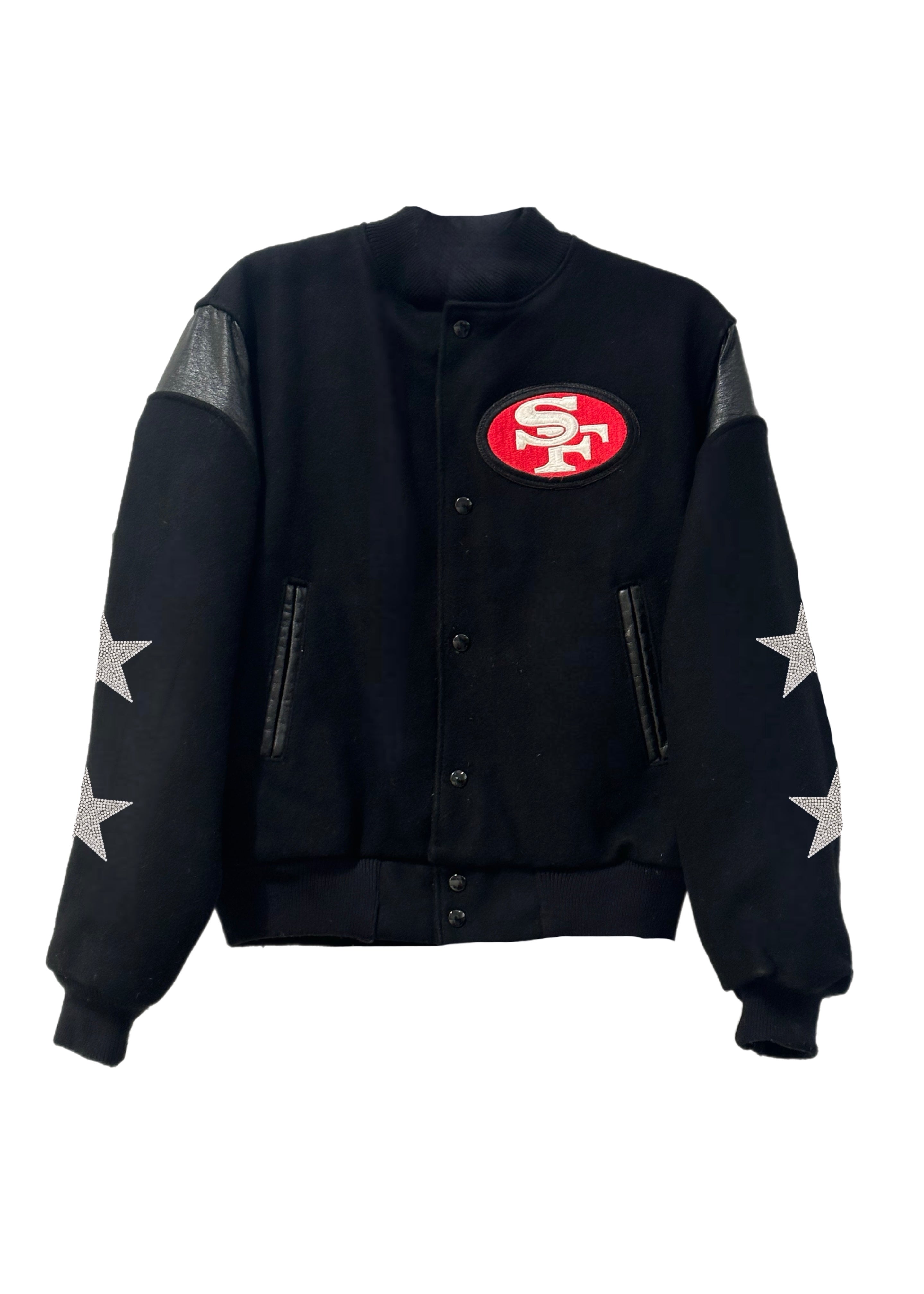 San Francisco 49ers, Football “Rare Find” One of a KIND Vintage Letterman Jacket with Crystal Star Design