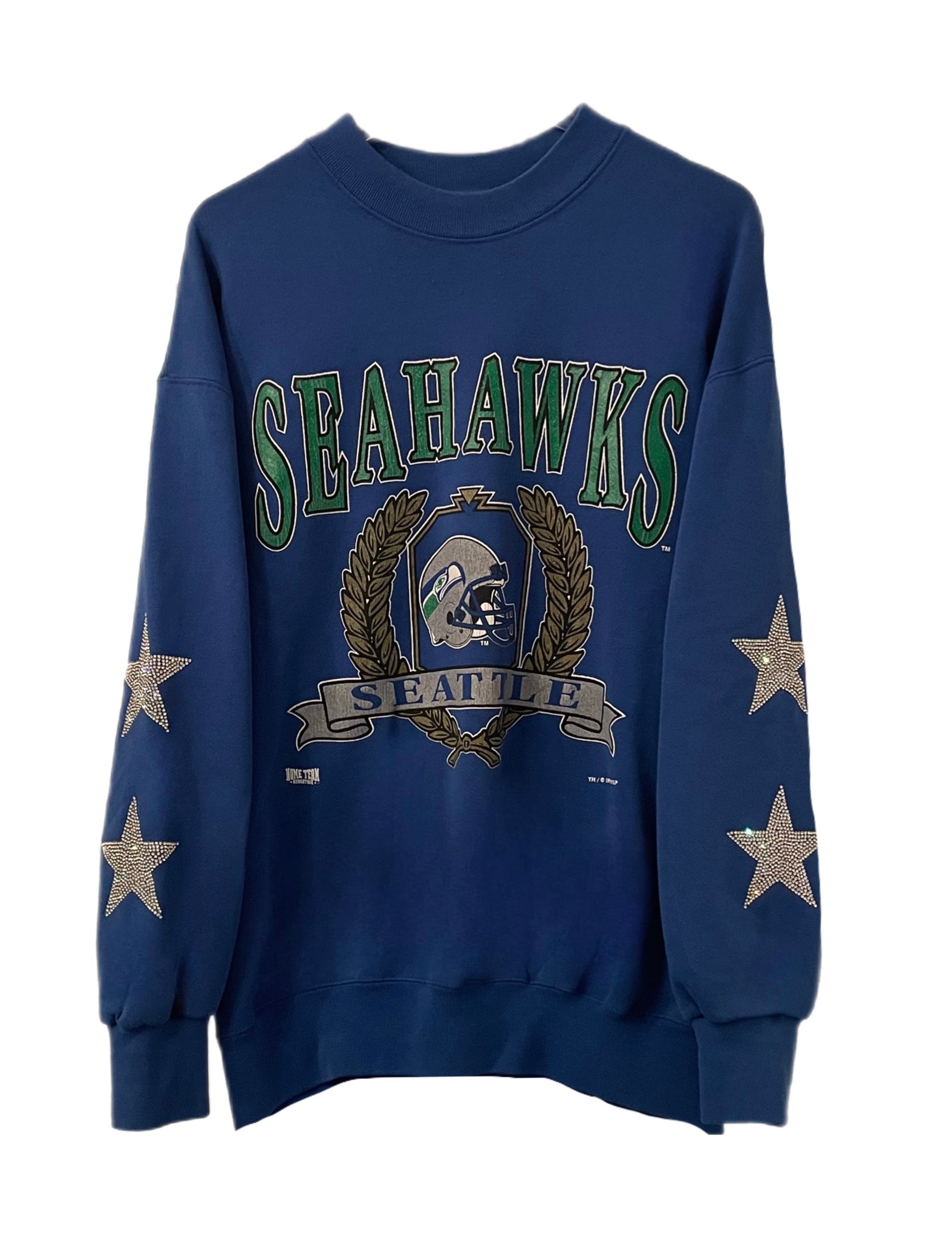 Seattle Seahawks, Football One of a KIND Vintage Sweatshirt with Crystal Star Design