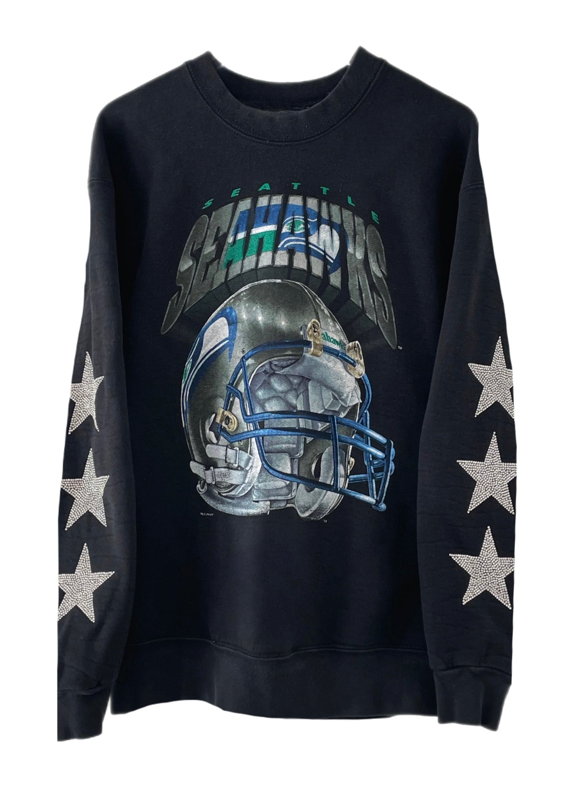 Seattle Seahawks, Football One of a KIND Vintage Sweatshirt with Three Crystal Star Design With Custom Name and Number