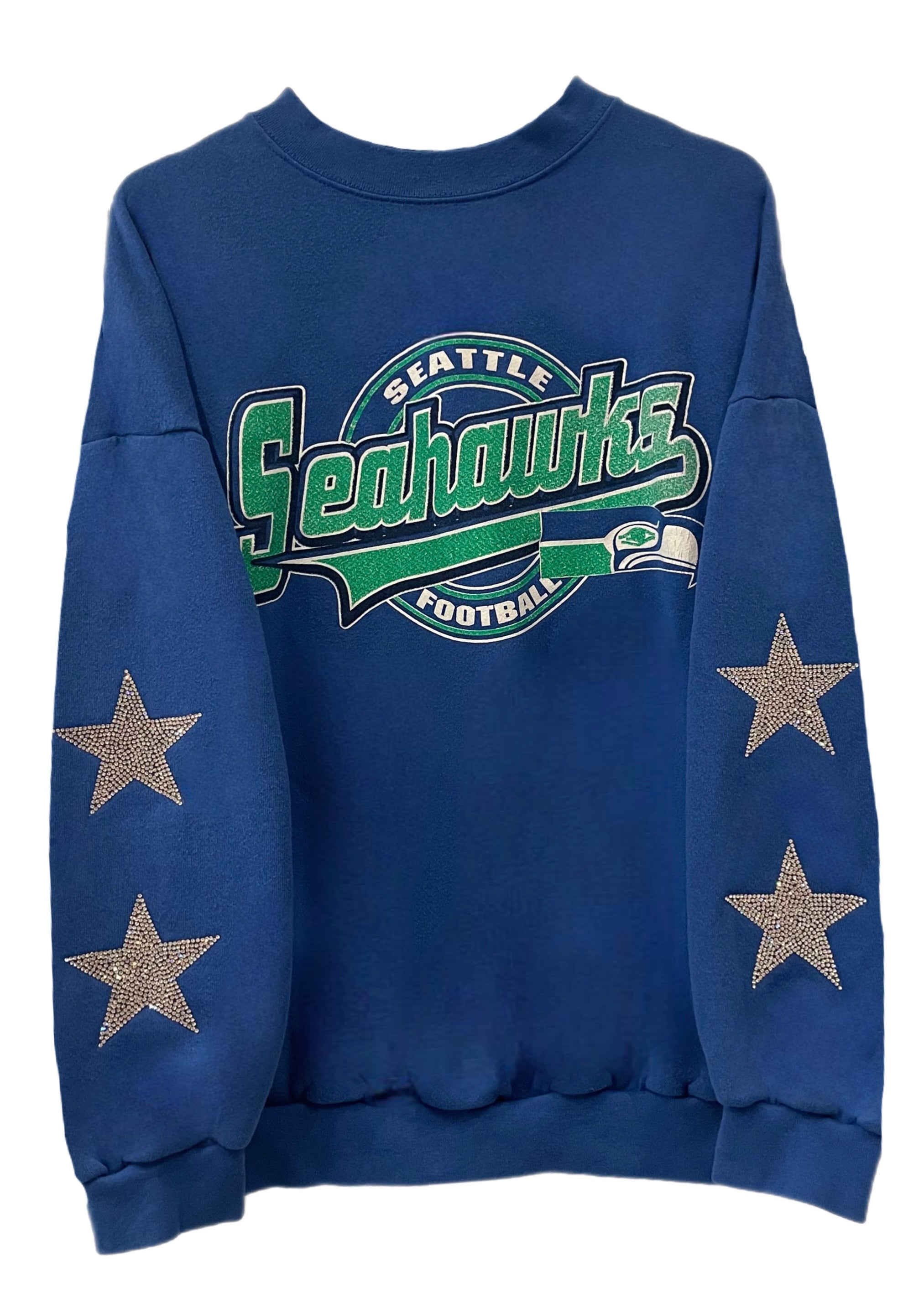 Seattle Seahawks, Football One of a KIND Vintage Sweatshirt with Crystal Star Design