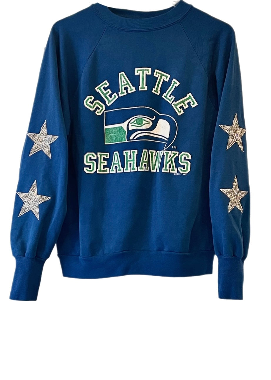 Seattle Seahawks, Football One of a KIND Vintage Sweatshirt with Crystal Star Design