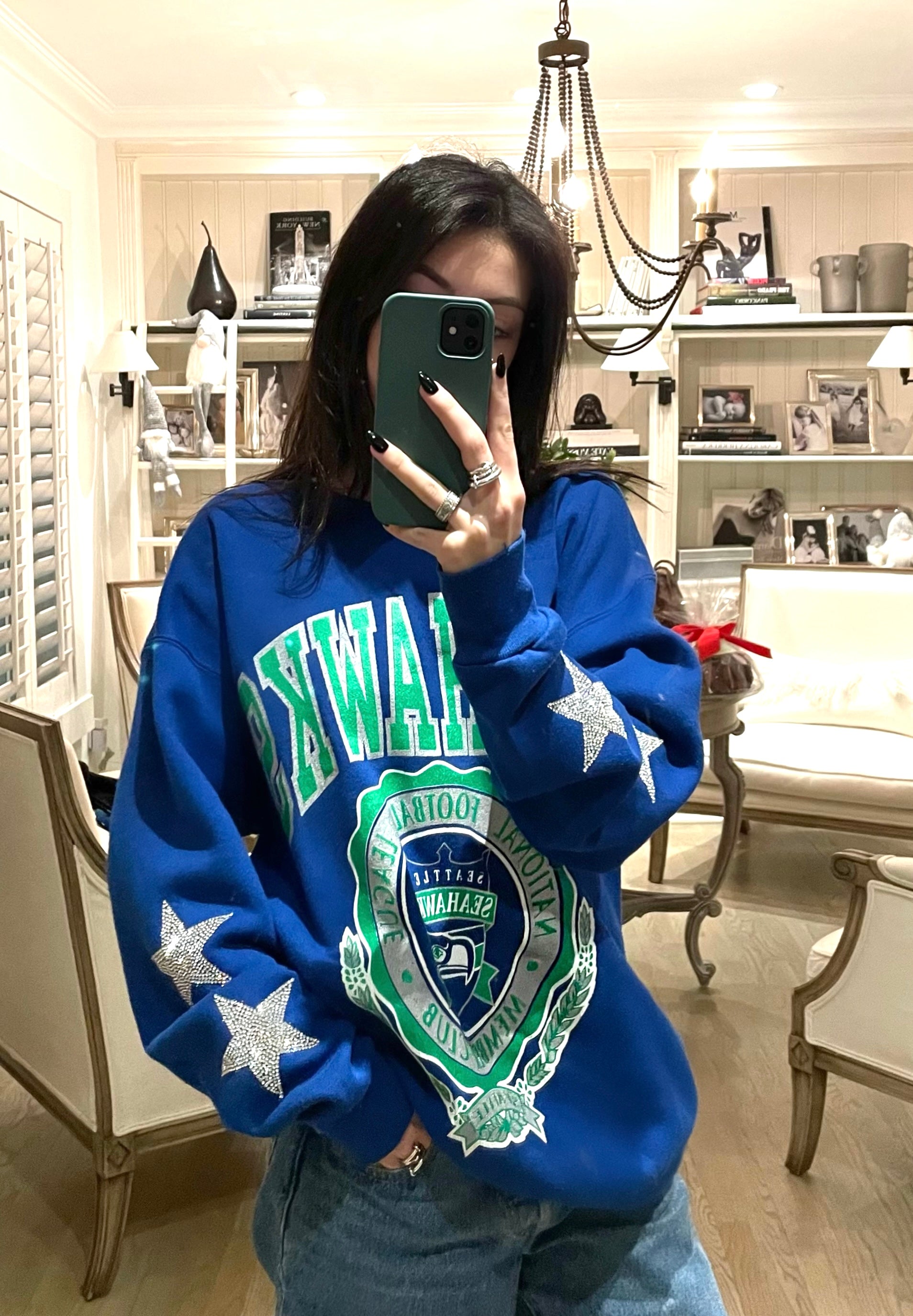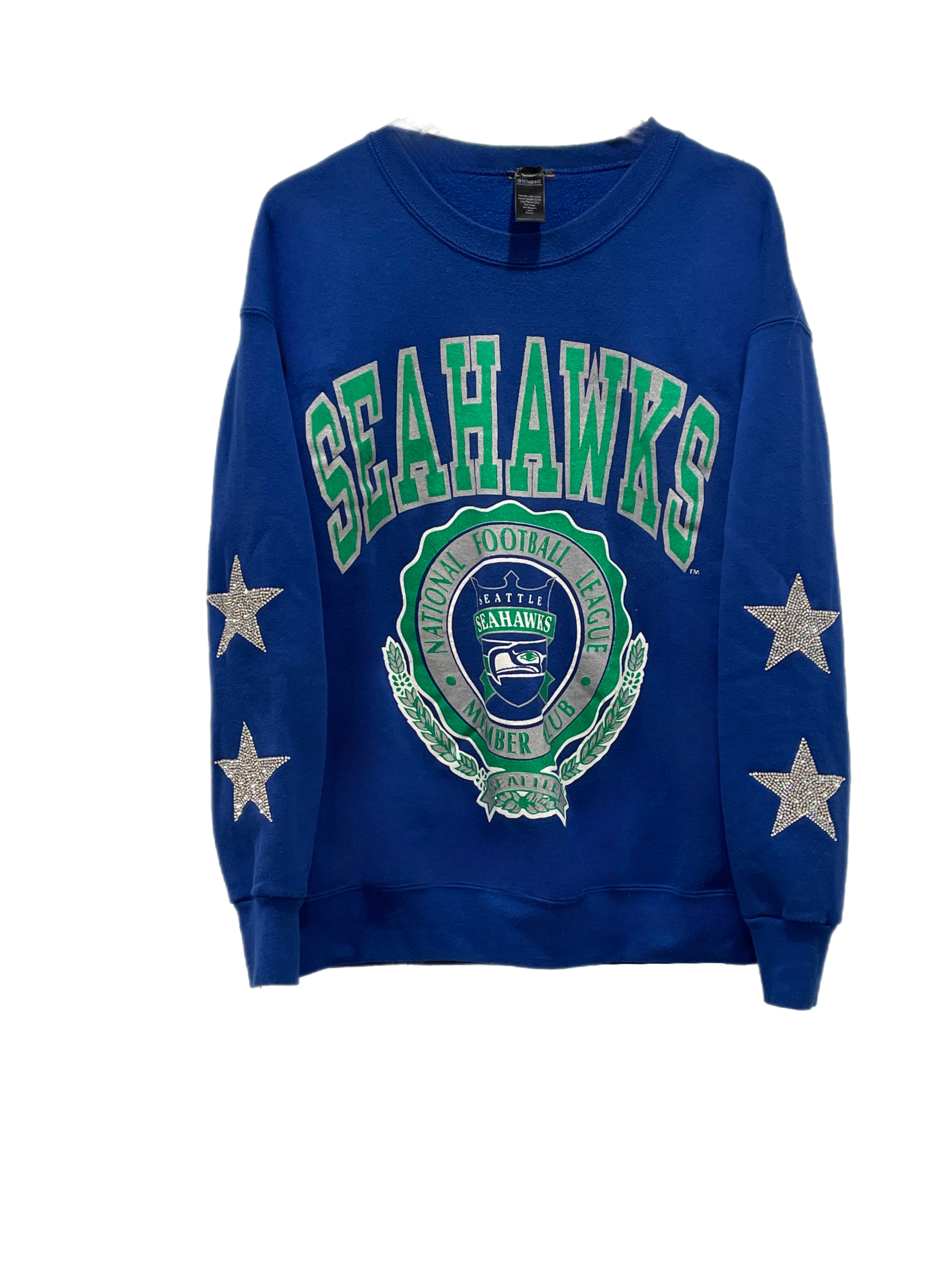 Seattle Seahawks, Football One of a KIND Vintage Sweatshirt with Crystal Star Design