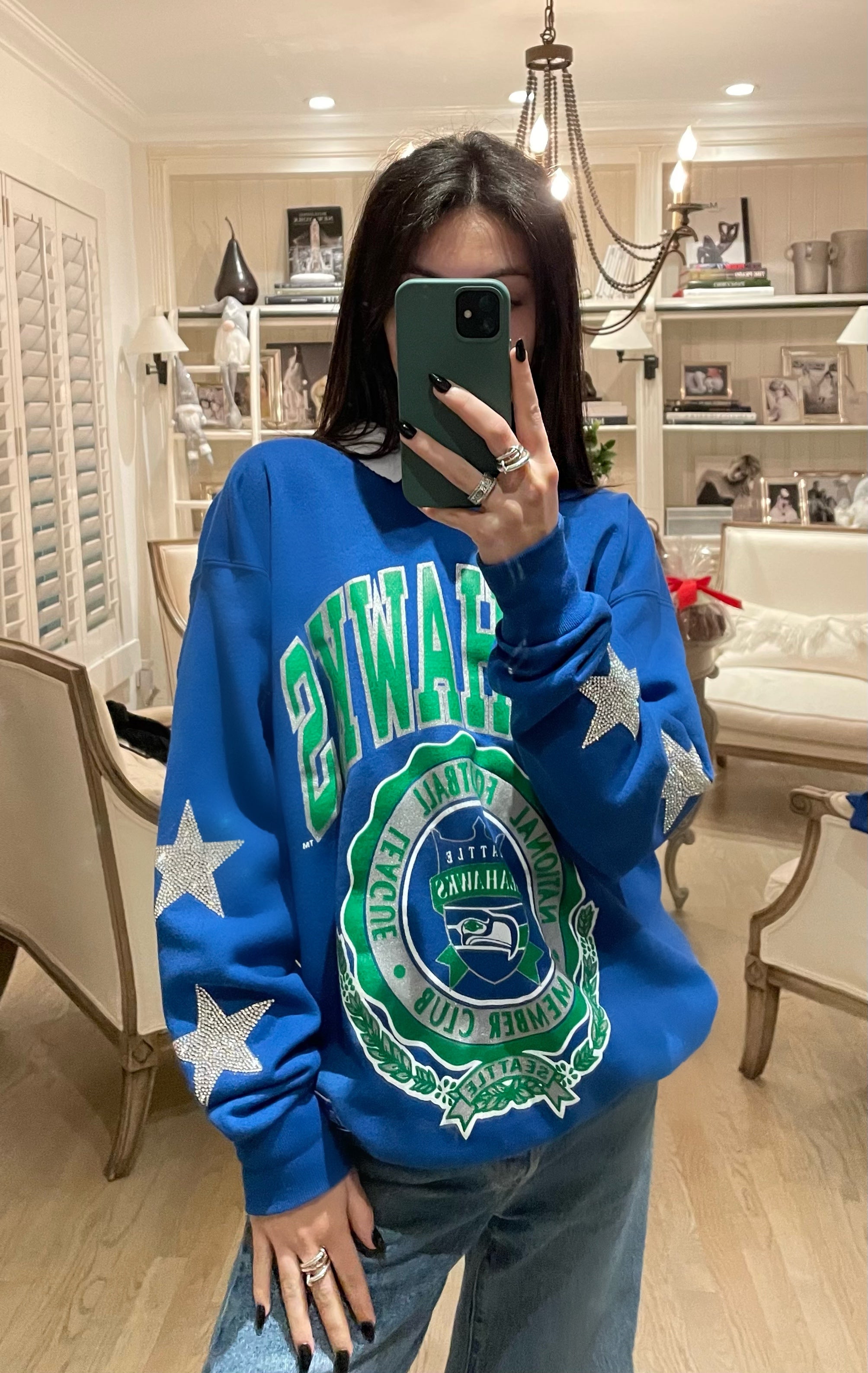 Seattle Seahawks, Football One of a KIND Vintage Sweatshirt with Crystal Star Design