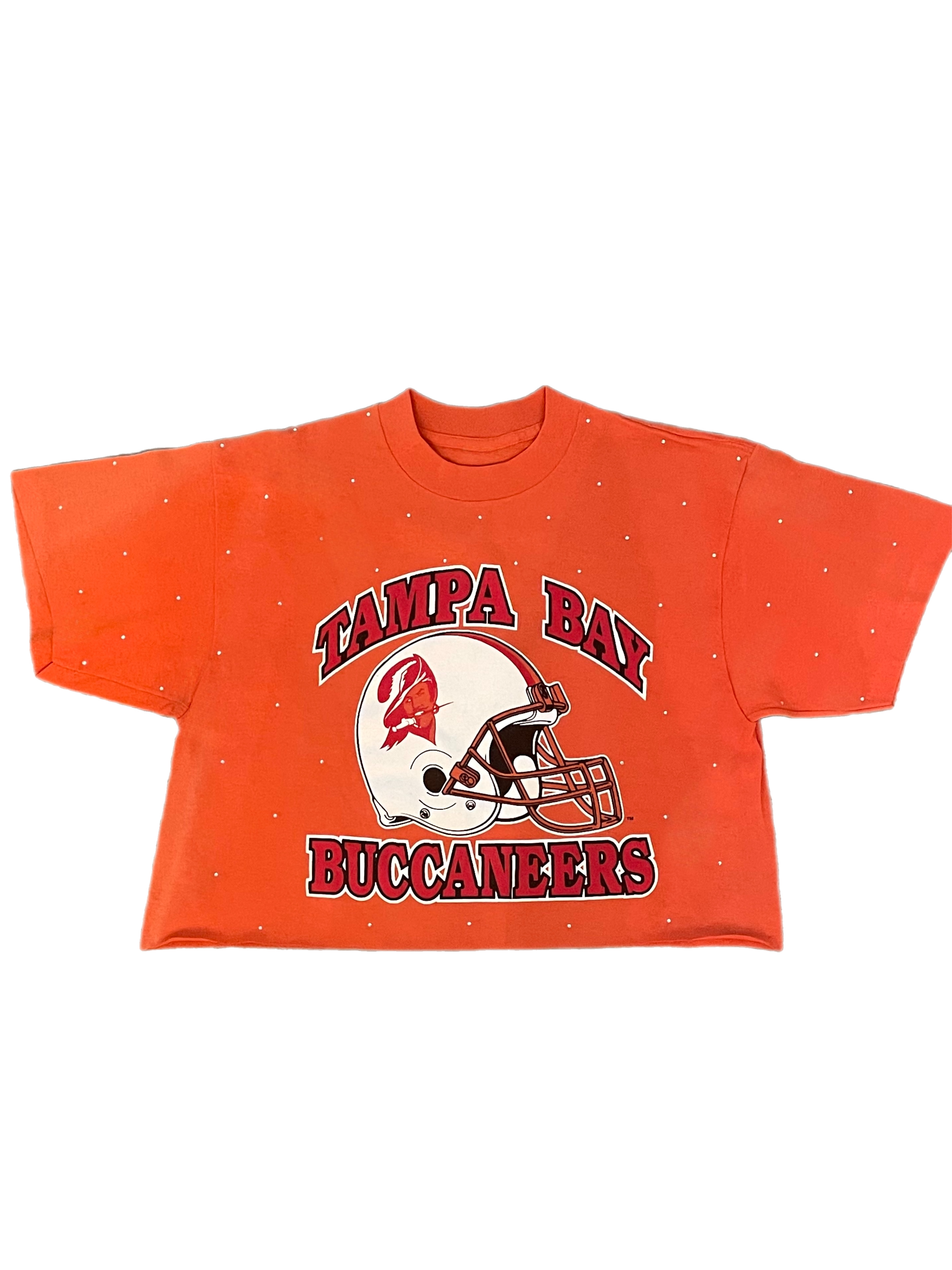 Tampa Bay Buccaneers, Football One of a KIND Vintage Cropped Tee with All Over Crystal Design