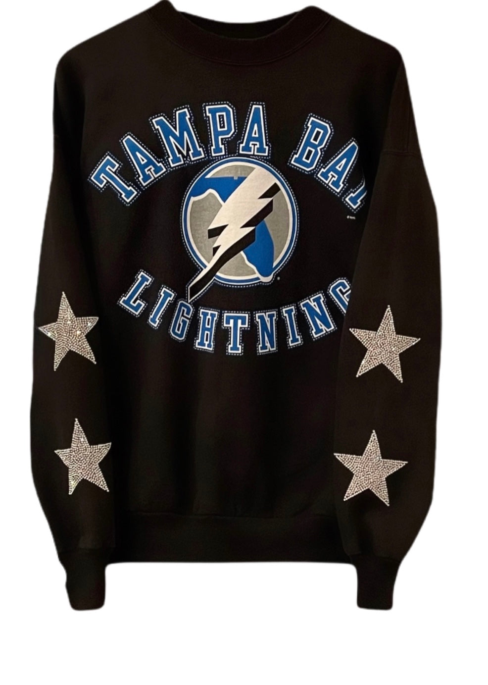 Tampa Bay Lightning, Hockey One of a KIND vintage Sweatshirt with Crystal Star Design with Custom Crystal Name & Number