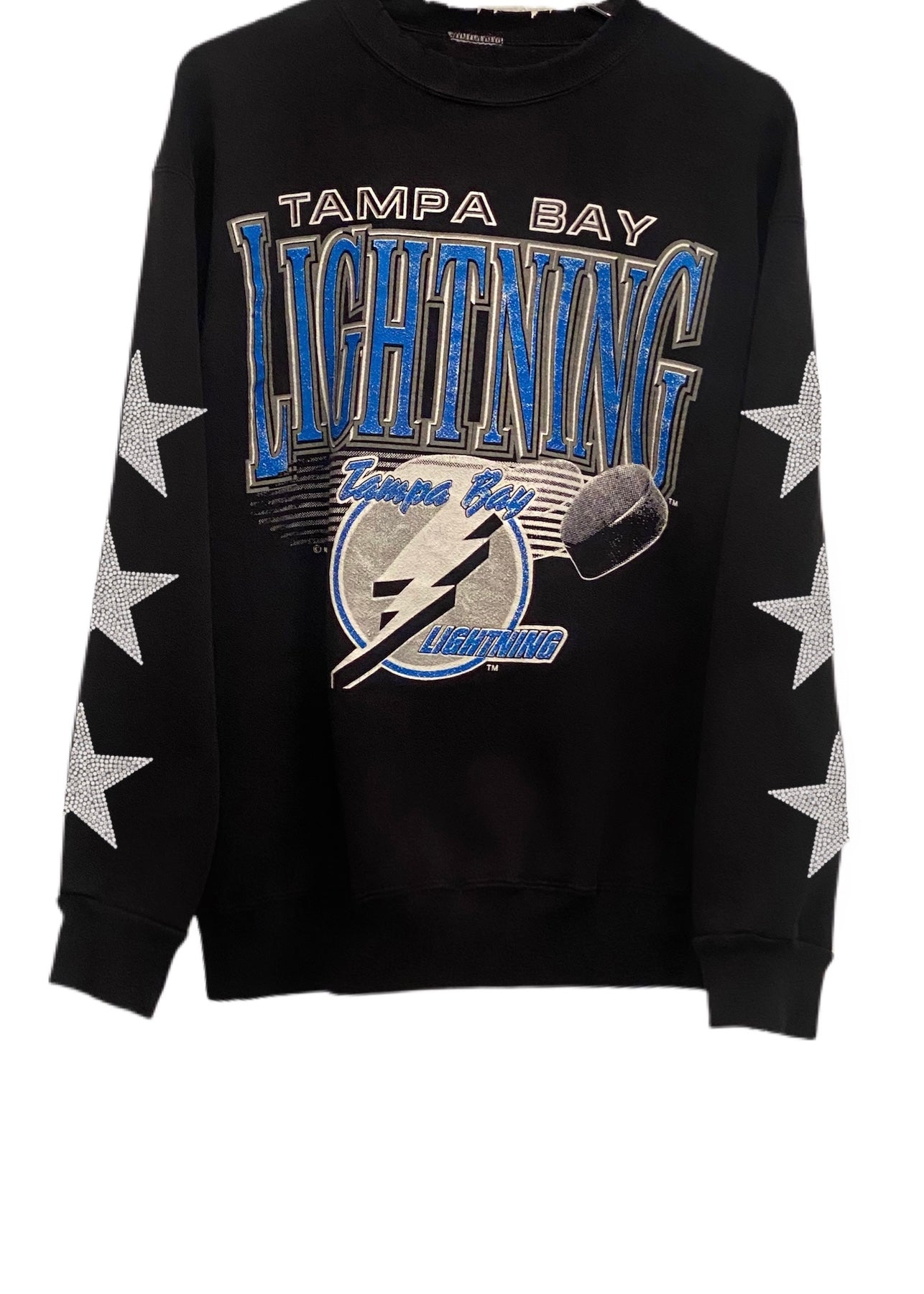 Tampa Bay Lightning, Hockey One of a KIND Vintage Sweatshirt with Three Crystal Star Design, Custom Name & Number