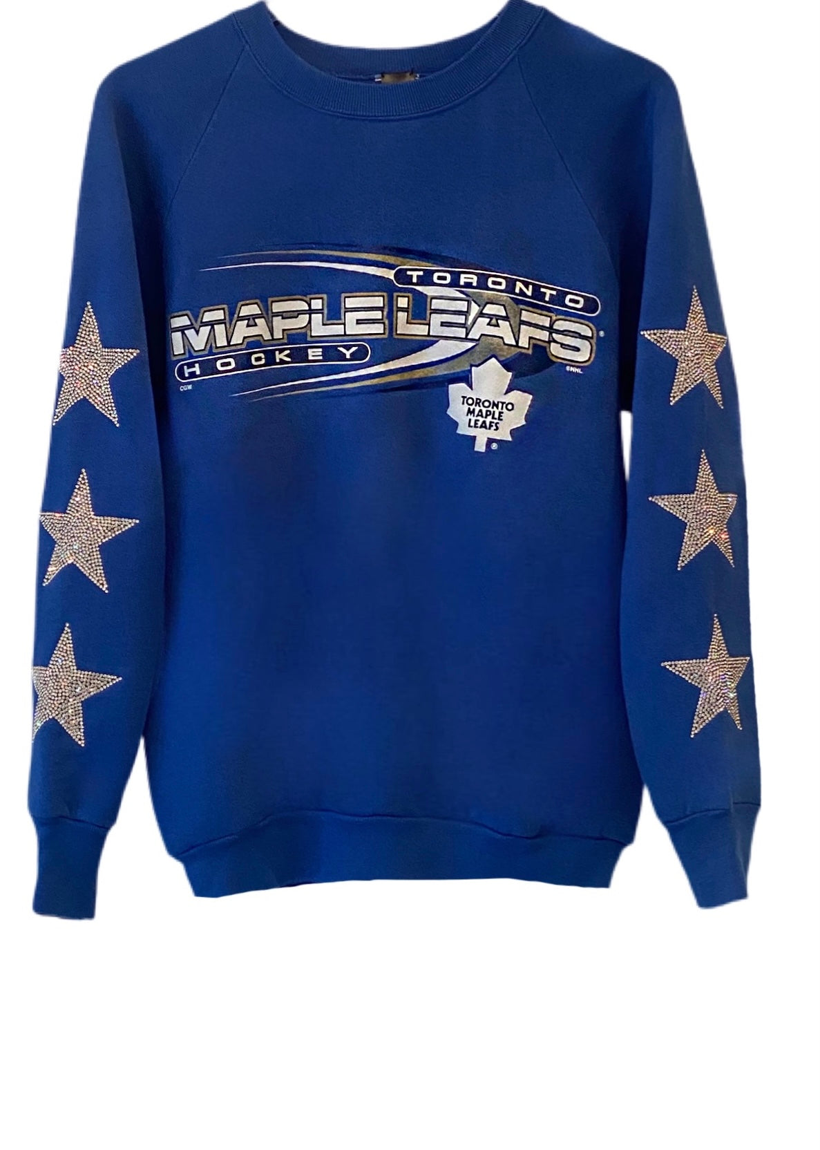 Toronto Maple Leafs, Hockey One of a KIND Vintage Sweatshirt with Three Crystal Stars Design
