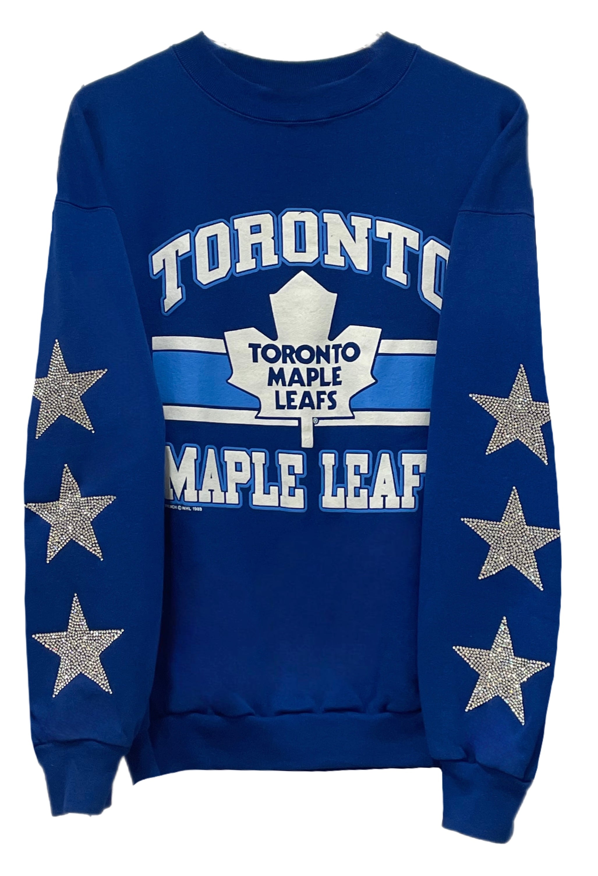 Toronto Maple Leafs, Hockey One of a KIND Vintage Sweatshirt with Three Crystal Stars Design