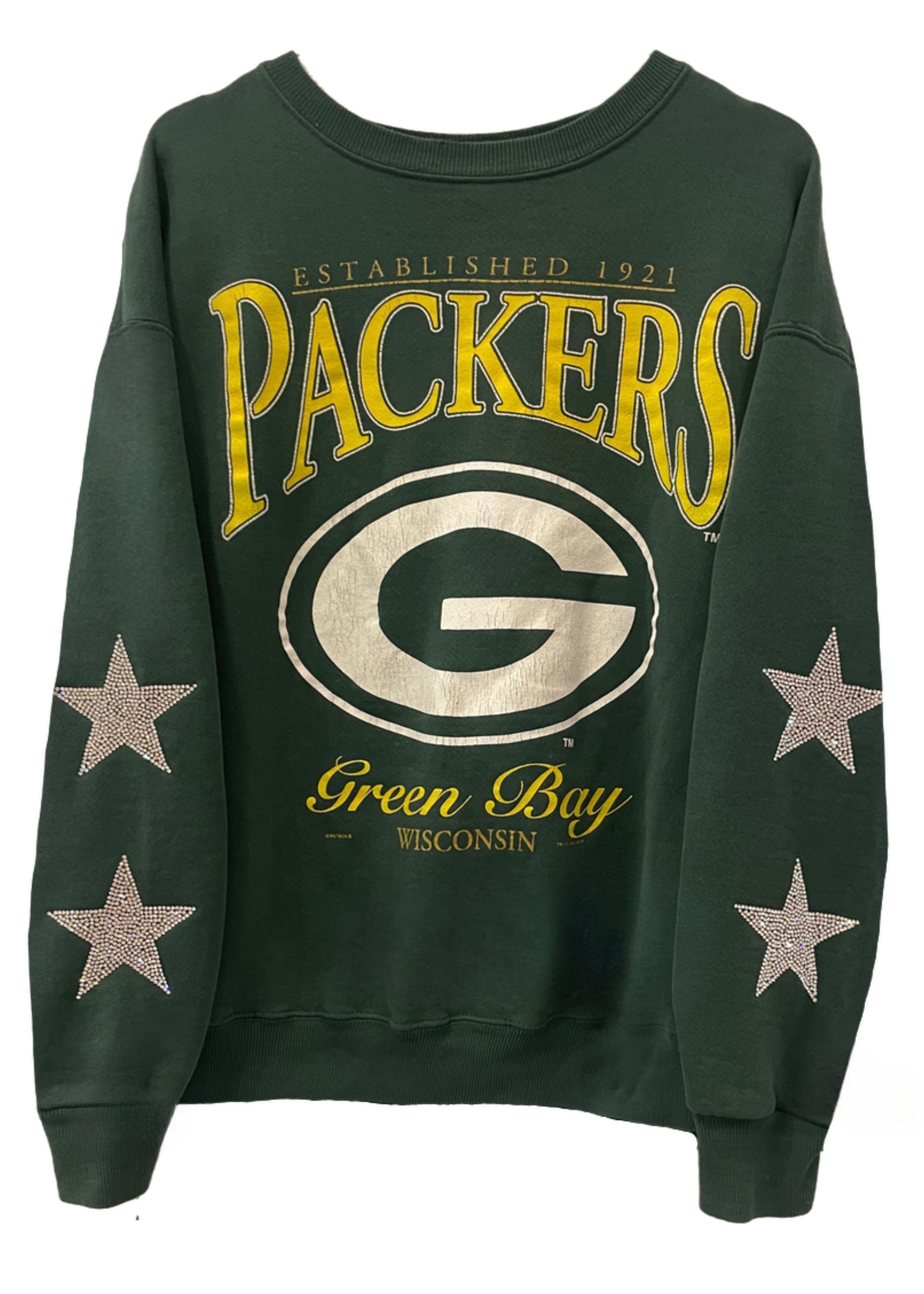 Green Bay Packers, Football One of a KIND Vintage Sweatshirt with Crystal Star Design