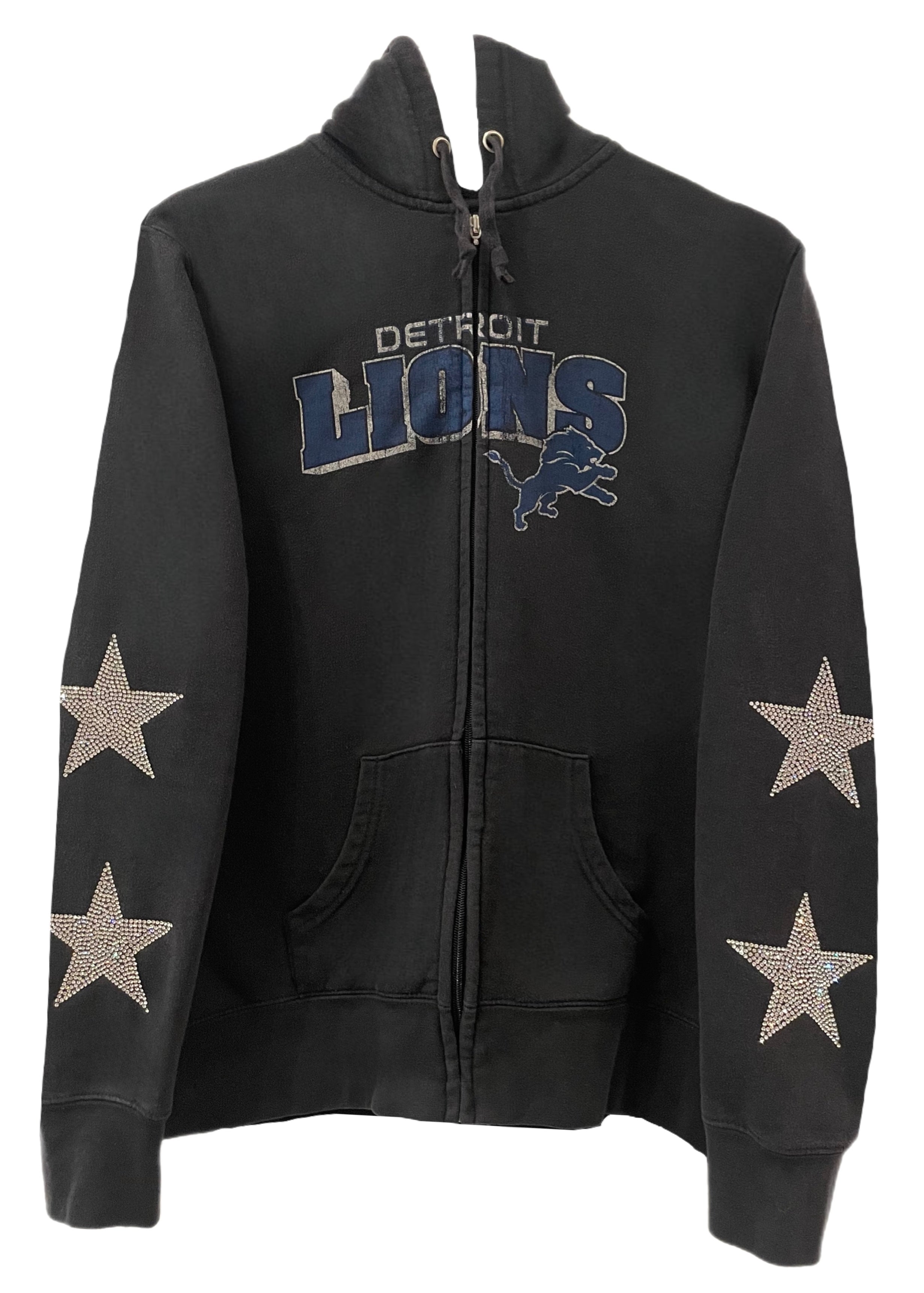 Detroit Lions, Football One of a KIND Vintage Zip Up Hoodie with Crystal Star Design