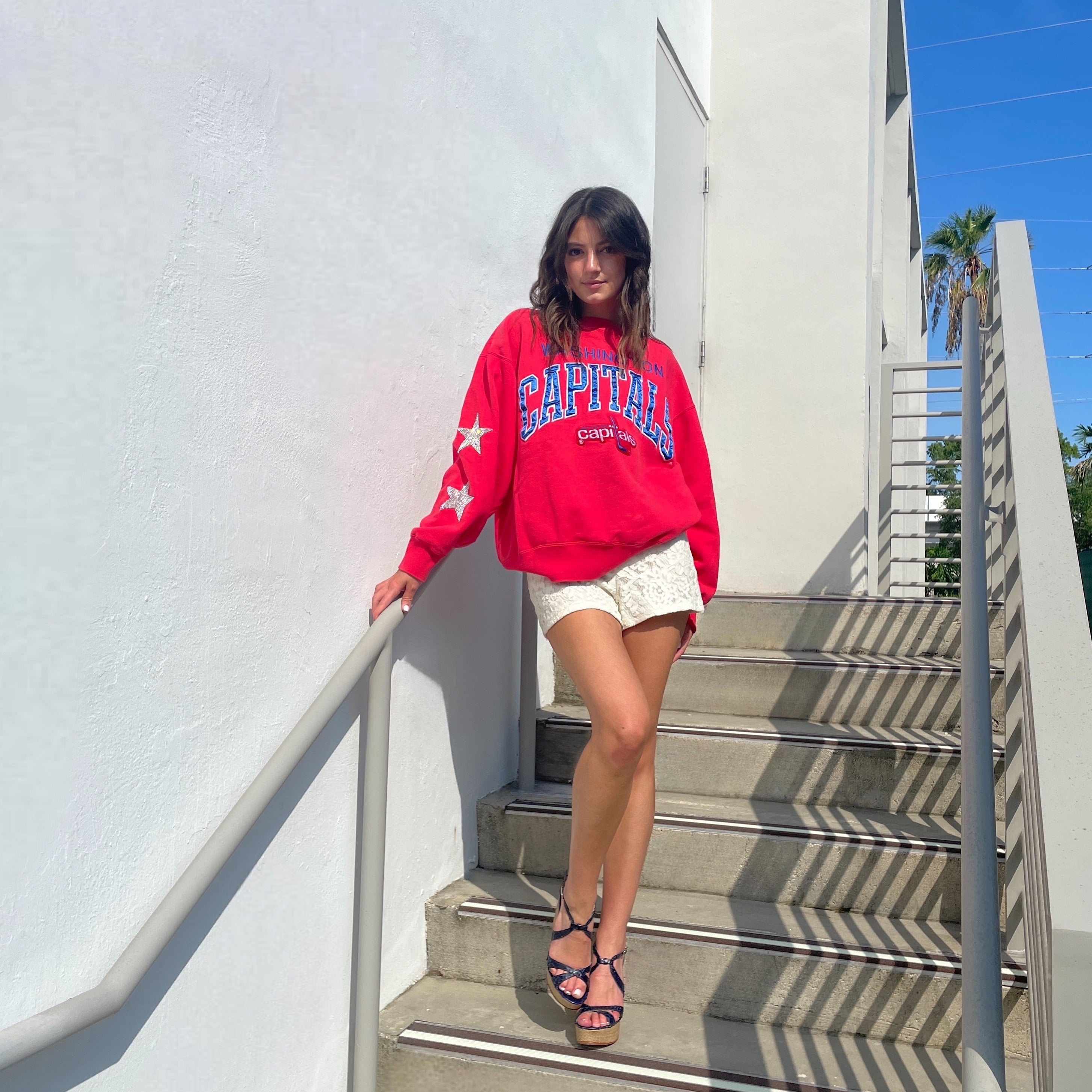 Washington Capitals, Hockey One of a KIND Vintage Sweatshirt with Crystal Stars Design