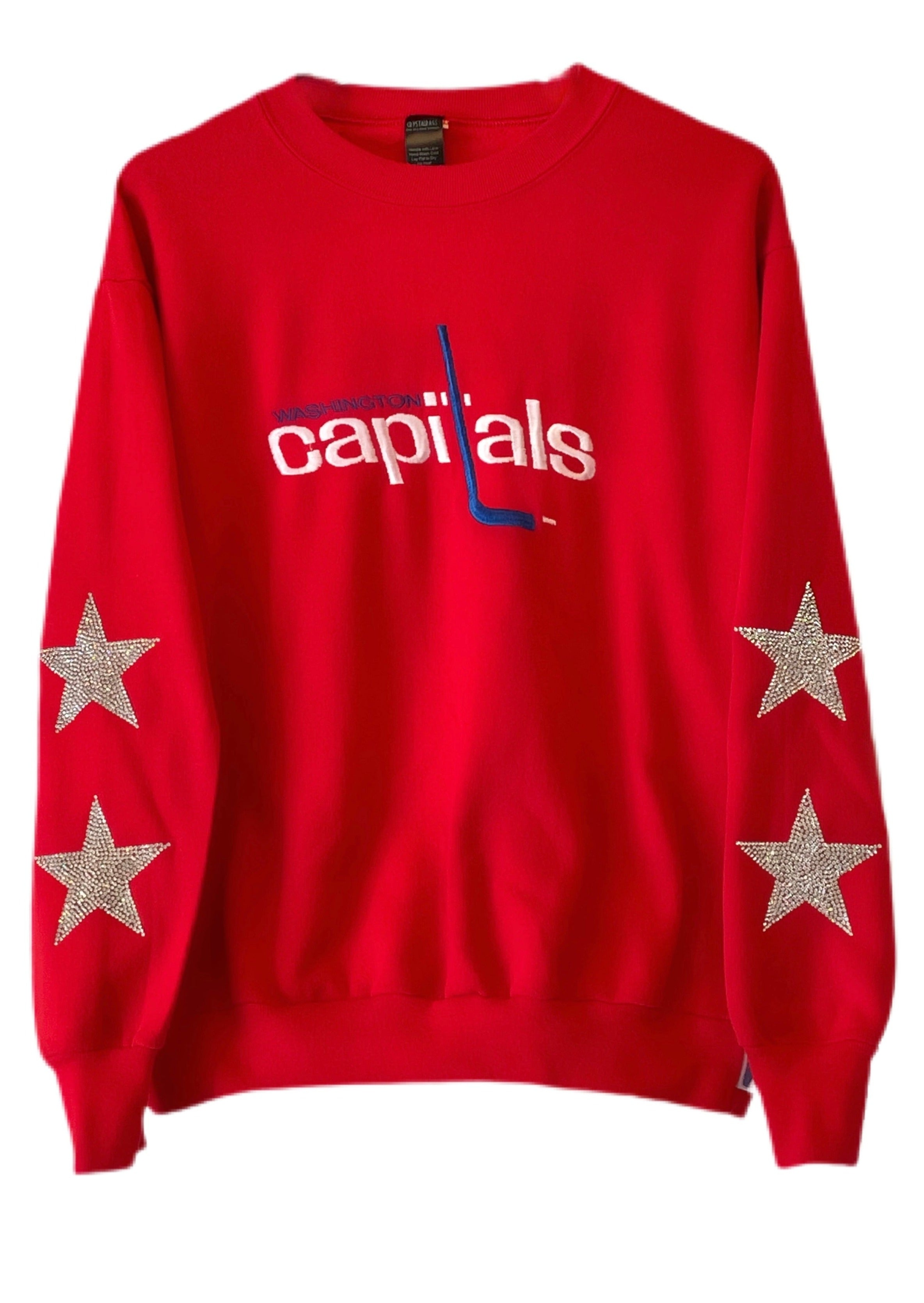 Washington Capitals, Hockey One of a KIND Vintage Sweatshirt with Crystal Stars Design